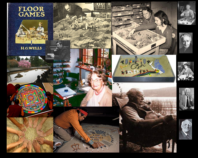 M. Lowenfeld, inspirou-se no livro, "Floor Games" (1911), do escritor Inglês de literatura infantil, Herbert George Wells (1866-1946), autor também dos livros "A máquina do tempo" (1895),"O homem invisivel" (1897) e "A guerra dos Mundos" (1898), entre muitos outros. No livro "Floor Games" (Jogos do Chão), o autor descrevia as brincadeiras que realizava com seus dois filhos, que se sentavam no chão e que construiam, de forma expontânea, cidades e diversos mundos em fantasia, com vários materiais tais como, bocados de madeira, plasticina, papel, entre outros.