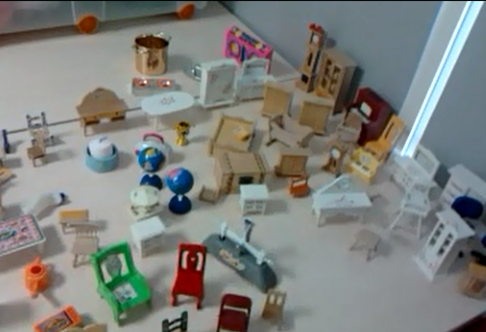 e de protecção. Os objectos, normalmente encontram-se em prateleiras ou armários e são colocados à disposição do sujeito, de forma a construir com eles um cenário.